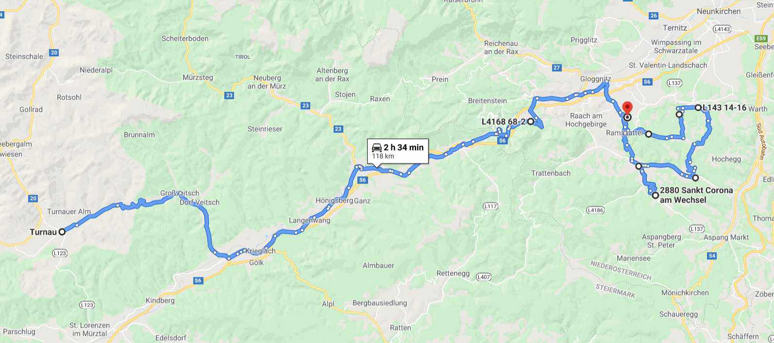 Nach Duschen, Frühstücken und dem Verstauen einiger Sachen fahren wir um 8:20 los. Via Veitsch gelangen wir ins Mürztal, wo wir beim Hofer ...