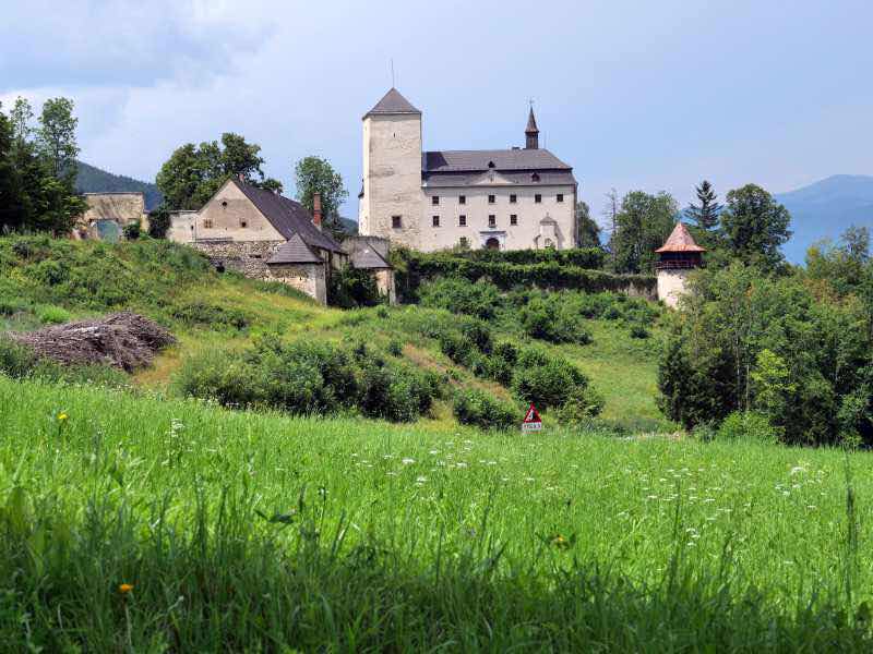 Den Aufstieg zur Burg Feistritz ersparen wir uns, da es sich um ein Hotel handelt. Inzwischen sind die Regenwolken abgezogen.