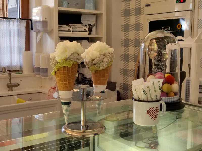Unsere Route führt an der Eisgreissler Manufaktur vorbei. Es handelt sich dabei um eine Bio-Landwirtschaft, die Eis in oft ungewöhnlichen Sorten produziert. Neben Führungen durch den Betrieb gibt es auch einen Außenbereich mit Attraktionen vor allem für Kinder, z.B. einen Turm mit mehreren Rutschen. Wir essen ein Stanitzel mit Graumohn-, Kürbiskernöl- und Ziegenkäse-Eis. Alle drei Sorten schmecken hervorragend.