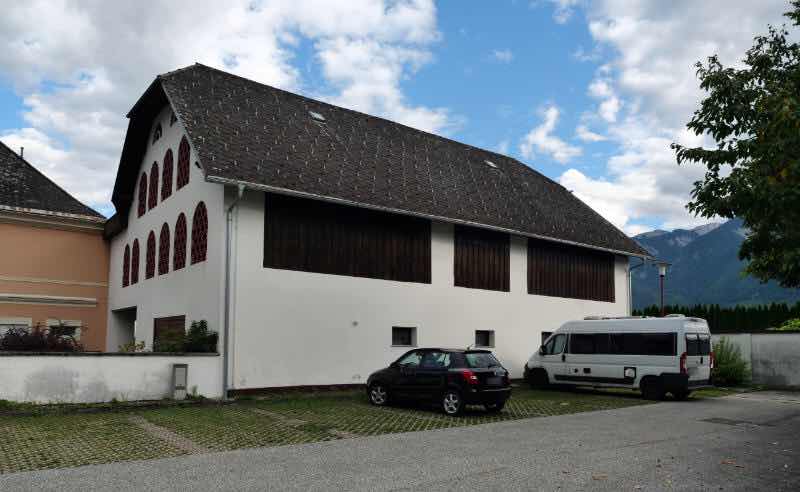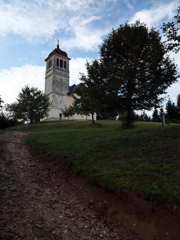 Der Parkplatz bei der Seilbahn ist groß und eben, wäre also gut für eine Übernachtung geeignet. Allerdings steht nahe der Einfahrt groß „Camping verboten“, so dass wir nicht wissen, ob wir es wagen sollen, hier stehen zu bleiben. Aber da es ohnehin noch zu früh ist, beschließen wir, nach St. Michael ob Bleiburg zu fahren, wo wir auf einem Hügel eine Kirche bemerkt haben. Wir parken bei der Kirche im Ort und besichtigen diese.