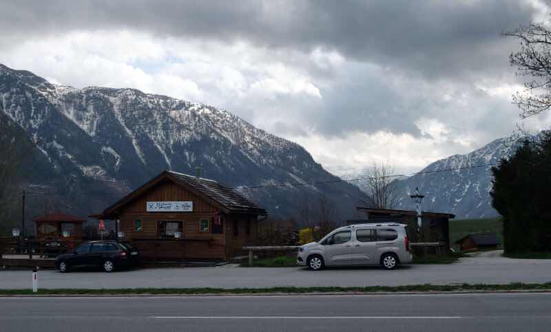... nehmen wir die Route am Traunsee entlang nach Bad Ischl und weiter über den Pötschenpass. In der Nähe von Altaussee vertreten wir uns am Parkplatz „Dachsteinblick“ die Beine.