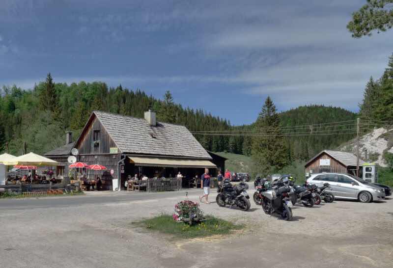 Danach machen wir uns auf den Weg in Richtung (Groß-)Mariazell. Sechs Kilometer hinter Kalte Kuchl halten wir für eine Jause bei einer Sitzbank. Hier fahren viele Organspender auf ihren Motorrädern durch und verursachen Lärm.