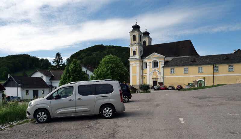 Ich bringe Ludwig Junior hinunter zum Parkplatz neben der Wallfahrtskirche (übernachtungsgeeignet) ...